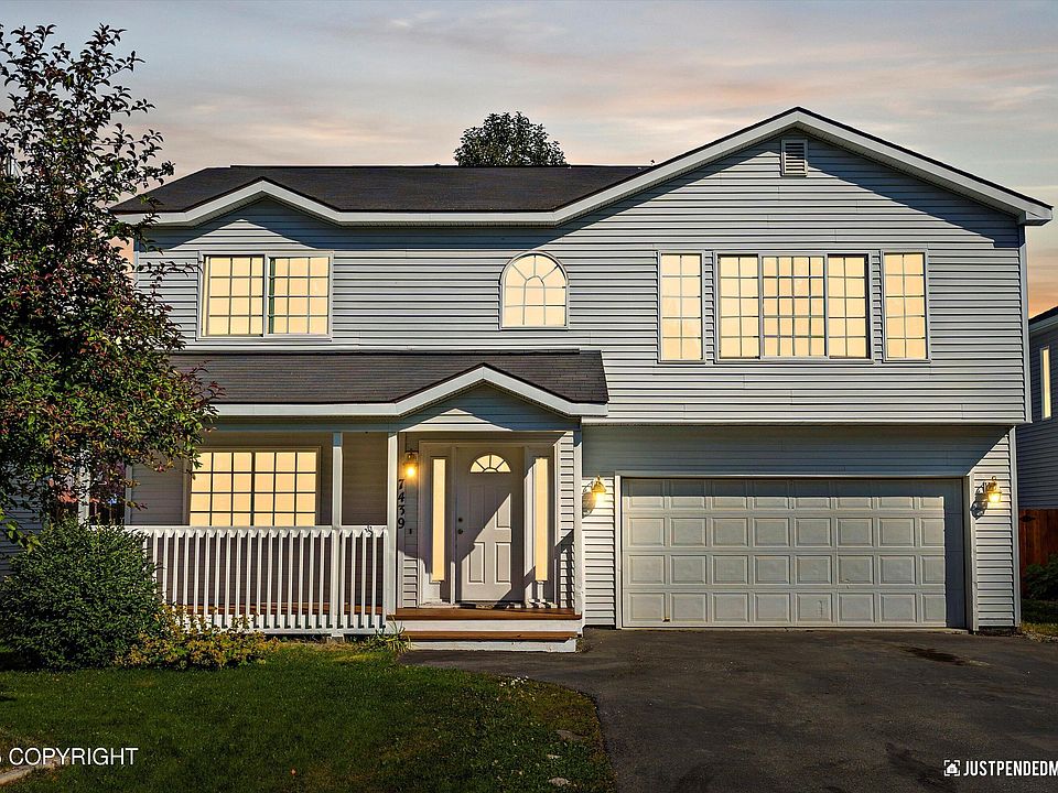 Super well-maintained South Anchorage family home. This turnkey 3 bed/2bath/2car garage home features new carpet, new paint, new light fixtures, and is move-in ready. Amazing school districts, close to shops and trails, and a super quiet neighborhood. Open vaulted ceilings in living room/kitchen upstairs with tons of natural light.