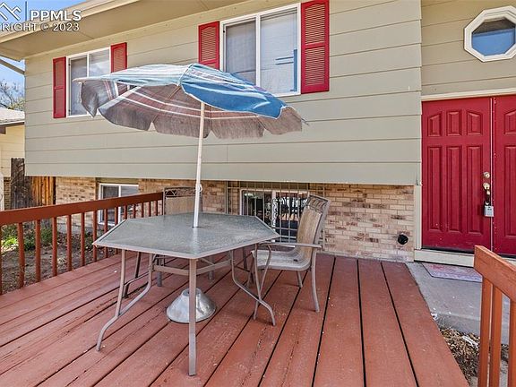Move in to a fully updated property, turn the key and you are home! Kitchen has granite counters, all bathrooms have upgraded tile showers/baths and flooring, along with updated vanities. Great natural light in a wonderful neighborhood. You wont find a better view in town of Pikes Peak while relaxing on this huge deck. Stay cool in the summer time with the newer central A/C powered by a newer furnace. Close to schools, shopping, and entertainment. Come see this one quick!