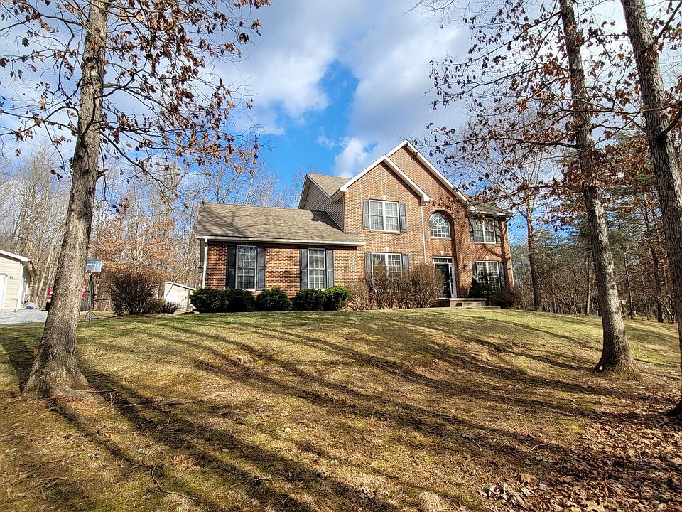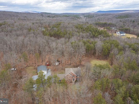 BACK ON MARKET! Private location off paved road with a paved driveway & 2 garages for the car enthusaist. Relax on your covered back porch enjoying the breeze from the ceiling fan where you can enjoy nature from all angles. This beautiful brick 4-bedroom, 3 level home backs to woods with a partially finished basement w/ full bath and welled exit on 3 acres is only a short drive to downtown Winchester & Medical Center. Gourmet kitchen w/island, 42" upgraded cabinetry, granite counters & stainless-steel appliances are open to the family room & gas fireplace overlooking the HUGE wooded backyard that adjoins a creek. 2 car attached garage PLUS a 2-car detached garage with electricity AND an extra-large fenced in dog kennel w/doghouse ( Approx 30x16) for man's best friend! 9' ceilings, hardwood and ceramic floors, and a separate living room that could be converted to an office or 1st-floor bedroom. Well has a great water flow of 20 GPM @ only 310 ft deep & 4-bedroom septic-see documents in the listing. This home boasts dual zone heating, propane/gas stove and a great floorplan, sellers are currently using AT&T hotspot & it works great, several other internet providers are also available such as Winchester wireless, Starlink, etc... - this home has it all.