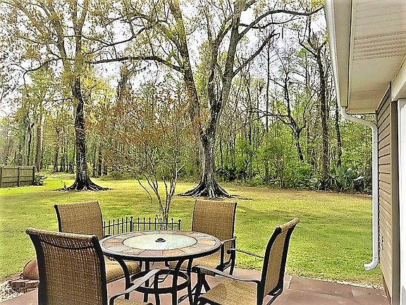 Beautiful home in a country atmosphere. Lovely oak tress behind the home. Lot is very deep ! Home has beautiful neutral colors that accent the gorgeous wood floors and ceramic tile. Roof only approx 3 yrs old. High ceilings and crown molding. Well thought out floor plan. Split floor plan with master bedroom on opposite side of the guest bedrooms . Very well maintained home. Beautifully landscaped and inviting exterior. Flood elevation certificate on file. Detached storage shed. Very long driveway leading to the carport. Extra large lot. You will love the location !