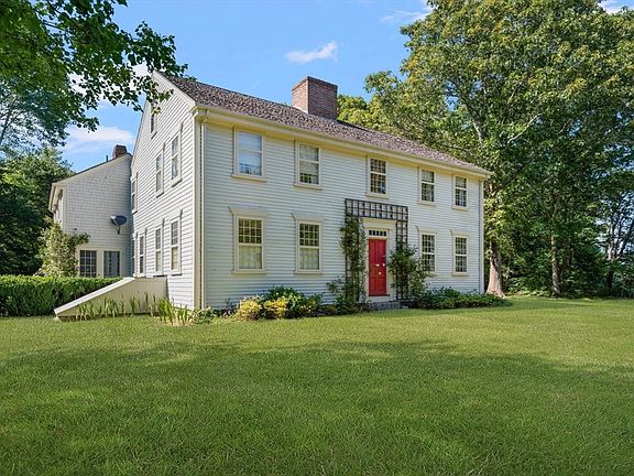 Welcome to Jessies Neck, a 25 +/- acre private peninsula located on the East Branch of the Westport River upon which sits this stately Center-Chimney Colonial. Originally built in 1790 in Somerset MA for Johnathan Bowers and relocated to Westport in 1975. This home was reconstructed on a modern foundation and placed in its new setting to take advantage of the serene river & marsh views surrounding the waterfront estate. Featuring 7 fireplaces, wide plank flooring & many period details, this exquisitely maintained home will surely delight those wishing to serve as stewards to a piece of history. The main level offers formal living, dining and family rooms, office and updated kitchen. A mudroom w/ laundry and half bath complete the first floor. Travel up one of two staircases to find a primary bedroom with ensuite, sitting room, 2 additional bedrooms and full bath. Surrounded by acres of cleared and wooded land & a clamshell path leading to the estate's private dock.