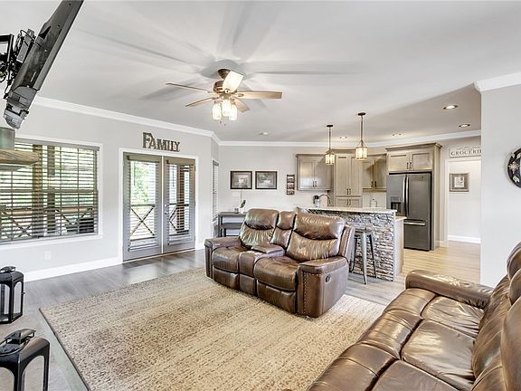 Step inside to an open, split floorplan with 9ft ceilings, custom colors and double crown molding throughout. Enjoy the