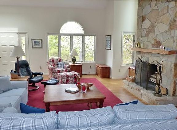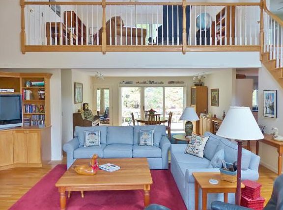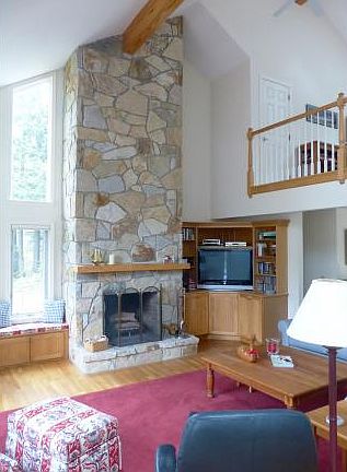 Newer Contemporary home located in a wonderful Quechee neighborhood. Enter into a large living-dining area w/ a floor to ceiling stone fireplace. Master suite on main floor w/ walk-in closet; large bathroom w/ jet tub, separate shower, & double sink vanity. Large eat in kitchen with island, powder room & laundry as well as a heated enclosed porch which opens onto a deck to allow you to enjoy all the seasons. Upstairs are 2 guest bedrooms, full bath & spacious loft for use as an office or family room. Full unfinished basement w/ great storage. Hardwood floors on main level. Central air conditioning, security system. 5 Ceiling fans included. Professionally landscaped property designed for very easy maintenance, paved driveway & attached 2 car garage. Private backyard. Storage shed included.Home has been meticulously maintained by the original owners. Perfect for full time living or vacation home. Easy access to Hanover, Lebanon and Woodstock. Golf cart ride to Club.
