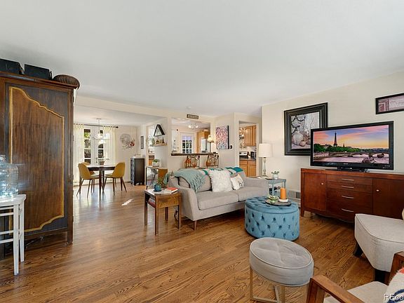 Discover a serene oasis in the heart of the city! As you step inside this charming ranch-style home, you'll be greeted by an open floor plan that invites in a flood of natural light which accentuates the beautiful hardwood floors. The spacious living room seamlessly transitions into the dining area, with French doors that lead out to a lovely patio, creating the perfect setting for indoor-outdoor living and entertaining. The kitchen features granite countertops, stainless steel appliances, and a convenient breakfast bar. Just steps away from the kitchen, you'll discover a laundry closet and a full bathroom for everyday convenience. Three spacious and sun-filled bedrooms await down the hall, offering cozy retreats for peaceful nights and rejuvenating mornings. The spacious backyard is truly a private serene oasis. Step out onto the large, sun-drenched deck and patio, enveloped by lush landscaping and the comfortable shade of mature trees. Enjoy both an uncovered patio space and pergola covered patio space for maximum enjoyment. The surrounding fully fenced yard enhances everyday privacy in this peaceful retreat. Convenience is paramount, with the bus line just a block away on 6th Avenue and the University of Colorado Hospital a mere two miles from your doorstep. The charming Lowry Town Center, with its shops and restaurants, and the Arapahoe Community College Lowry Campus are within easy walking or biking distance. The Denver International Airport is also only 30 minutes away. Recent updates include a newer hot water heater, furnace and A/C within the last two years, and custom blinds installed within the last year. Don't miss the opportunity to make this charming home your own!