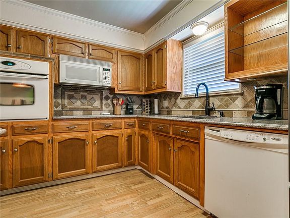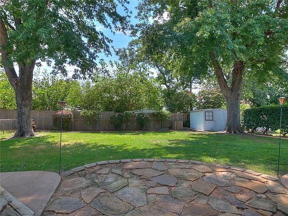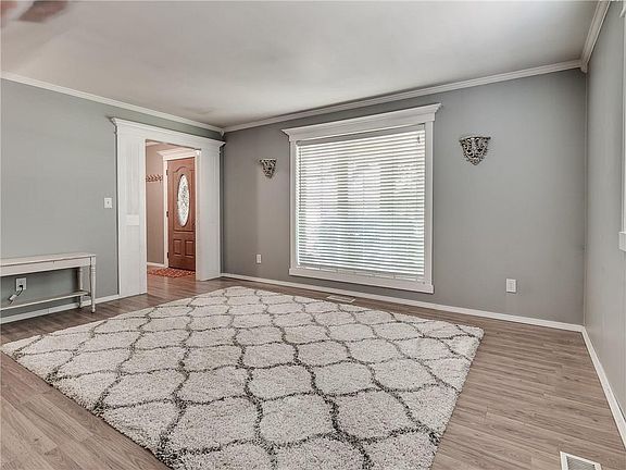 Motivated seller! Tucked into a cozy neighborhood, with large trees & quiet streets is this spacious/remodeled home w/ tons of detail! Grants & down payment assistance available, ask me how! 2 story home offers laminate flooring throughout, crown molding, decorative trim & windows, kitchen w/ decorative tile backsplash, granite counters & large dining. 2 livings, one being more formal w/ detailed white, colonial style woodwork, bright & roomy. 2nd living is more of a family/den feel, being very large w/ mock fireplace & unique brick wall. Downstairs bedroom has built in desk & storage, great as an office too! Upstairs has 3 bedrooms & you'll be shocked by their size! Don't miss the laundry shoot & unique shelving tucked in at stairwell. Master has double doors that lead out to the raised deck, w/ stairs down to covered patio & easy access to your hot tub- that stays! New electric panel just added! Good sized yard w/ very large shade trees. 8 person storm shelter. Minutes from Tinker!