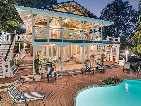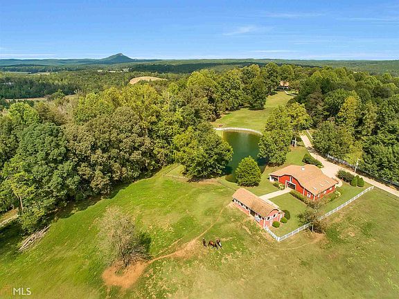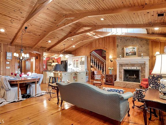 67 Acre Equestrian Estate and Outdoor Play Paradise! Charming 5BD, 4BA 3,780 sqft farmhouse features open country kitchen, 3 fireplaces, exposed beams and vaults, stone masonry, rich textures, and millwork that give the home a warm and inviting feel. Extraordinary entertaining area with pool, hot tub, steam room, outdoor kitchen, veranda, separate sleeping porch, horseshoe pit, and more! Stocked 1-acre pond with up to 8lb. bass, gazebo, dock, rock waterfall, pergola with sitting area and swings. Gated entrance, 10 acres of board fenced pasture, and over 50 acres of hardwood forest with creek and trails. 40x56 barn with 2 stalls, caretaker's qtrs., tack and tool rooms, and plumbing. Separate 6-stall stable plus 30x30 utility bldg. with kitchenette and bath.