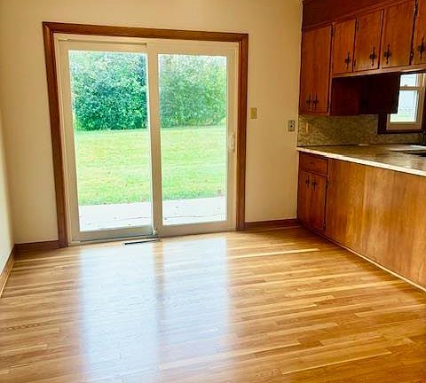This warm and inviting ranch home is situated on a beautiful lot with mature landscaping. When entering the home, you're greeted with beautiful mid-century modern woodwork in the entryway and the recently refinished hardwood floor throughout most of the home. Freshly painted, new light fixtures, new walkway and the main bathroom has been remodeled. The entryway opens into a spacious living room with a large front window to allow for plenty of light. All appliances remain, making it a move-in-ready home. There is a partially finished basement area with bathroom. So many possibilities! The oversized garage could be used as a garage or even as a workspace for the handyman in your family. Don't miss your chance to see this quaint home today.