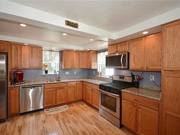 You are going to absolutely LOVE the fantastic eat-in kitchen with gorgeous granite counter top, beautiful cabinets & stainless steel appliances in this totally updated home!!! Plenty of cabinets & counter top space. Recessed lighting. Wonderful open floor plan. There are so many fantastic updates to this home you will enjoy & benefit from for many years to come. Kitchen remodeled 2015. New HUGE deck & sliding door 2014. Great for meals, entertaining & just relaxing. New flooring on first floor 2015. New hot water tank 2017. New lower level bathroom 2015. New retaining wall 2014. Two glass block windows 2018. New roof & gutters 2014. Gutter guards installed. New windows 2014. Repointed chimney & window seals. Fantastic back yard! Super convenient location. Easy access to downtown & South Hills. Great curb appeal. Two full baths. Washer & dryer included! Large shed included. Beautiful updated front door. Popular paint colors. Walk to Baldwin Twp park with plenty of play equipment.