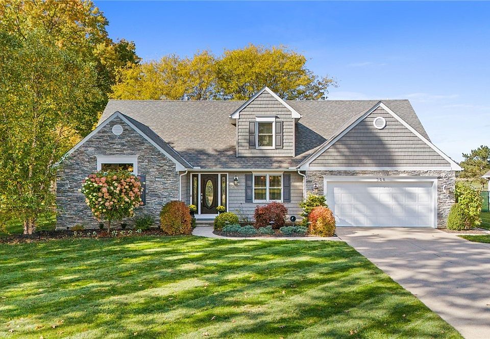 Welcome home to 744 Jaycox Road! Look no further than this stunning 4-bedroom, 2.5-bath cape cod home with gorgeous curb appeal that overlooks the 9th hole at Legacy Golf Course. This home is a showstopper and has so much to offer with many updates, including smart-home features and exterior accent lighting. You are greeted with the open foyer that flows into the spacious family room with a vaulted ceiling, custom-tiled gas fireplace, and tall windows bringing in lots of natural light! Love to cook and entertain? A dream kitchen awaits you with ample white cabinetry complemented by dark granite countertops adding a beautiful contrast, ceramic tile backsplash, and stainless-steel appliances. In addition, a home office with French doors is located just off the living room, giving you the perfect space to work from home. The formal dining room features stunning wainscoting and crown molding, perfect for hosting holidays and special dinner gatherings. Another unique feature is the first-floor owner’s suite with vaulted ceilings, a luxurious owner's bath with a soaking tub, and a huge walk-in closet. The laundry room is conveniently located on the first floor, just off the kitchen. A half bath completes this first level – offering true first floor-living! The second floor offers a balcony overlooking the family room, three full bedrooms each with ample closet space, a full bath, and a large storage closet. Downstairs in the basement, you can utilize it as a playroom or host your next movie or game night in the finished cozy rec room. Enjoy the view of the peaceful pond and the beautiful golf course from your fully fenced-in backyard. The backyard also has a concrete patio, gas line for grilling, fire pit, and shed that matches this beautiful home. Attached is a 2-car garage. All of this is located in a highly-regarded school district and minutes to I-90, Crocker Park, Avon Commons, and Lake Erie. This home is truly move-in ready and is ready for its next homeowner!