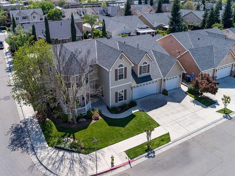 5-Bed + Office - Spacious with very tall ceilings & open floor plan. Excellent Solar fixed lease program saves current owners lots of money on their electric. Large corner lot with pool & low maintenance yard for entertaining. Master bed + 2 other bedrooms/office down, 3 bed & bath upstairs. Formal dining is being used as an entertaining bar room. Short walk to Buchanan complex in a highly desirable & well groomed neighborhood. Ceiling fans everywhere (11 total). Whole house fan. Sellers to provide Sect 1 pest cert & roof cert. Solar lease (7.924kw & 28 panels) highly rated SunPower program saves money for new owners! Transom windows. Prewired for alarm. Surround sound in great room & outdoor speakers on patio & master. Outdoor BBQ with mini fridge & side burner stays with the home! Sport pool (shallow on each end and 6' deep in middle) great for volleyball. Large fenced-in concrete area on other side of white fencing in back. Original owners.