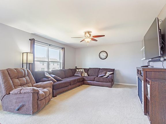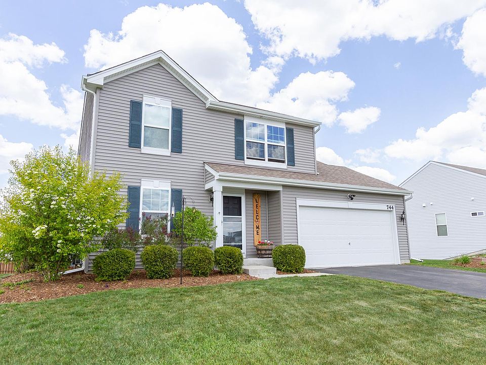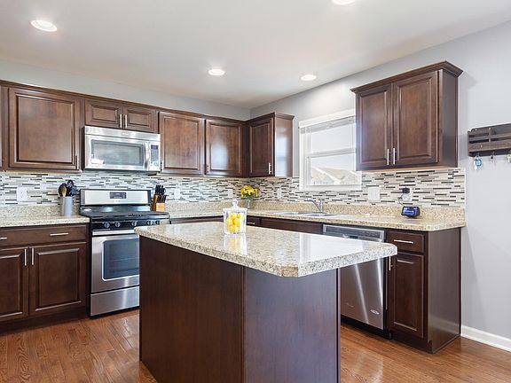 Beautiful 3 bedroom located on a corner lot in highly sought after Tuscany Woods~ nothing to do but move in. Great open concept floor plan with neutral paint throughout and an abundance of natural light. Versatile front room could be a living room or office. The spacious family room opens to the kitchen with stainless steel appliances, island/breakfast bar, pantry closet, beautiful backsplash, recessed lighting, and dining area with slider to the deck. Upstairs is a large master bedroom with en-suite bath, two additional bedrooms with ample closet space, and a full bath. Convenient second floor laundry too! The finished English basement has a versatile rec room for even more living space. Outside you can relax or entertain on the large deck leading to a paver patio overlooking the large fenced yard. Located closed to I90 for easy commuting. Great home in a great location!