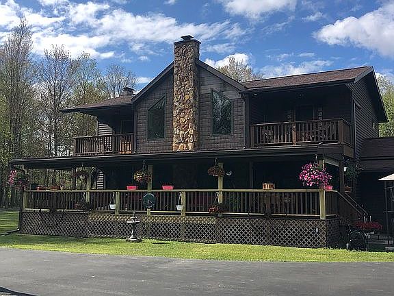 Imagine living here in this beautifully built and maintained property on 15 acres in Parsonville. Come and be drawn into its grandness yet peacefulness. First floor features hard pine stained floors, a fabulous kitchen with hand crafted cherry wood cabinets, and a great room with a wood stove and decorative chimney. The foyer of the house features a shadowbox that proudly tells of the history of the home--it was built from the ground up using materials that were lovingly obtained from the nearby church and from lumber and stone from the land itself. Second floor features 2 separate bedroom wings, both with private balconies, and one with a master bath and jetted tub. These bedrooms compliment the bedroom wing on the first floor, which also has its own separate entrance and porch. Lower level living adds so many possibilities also with a wood stove and bar. 2 1/2 car Garage. Working out buildings with wood stove and electrical Covered full porch.