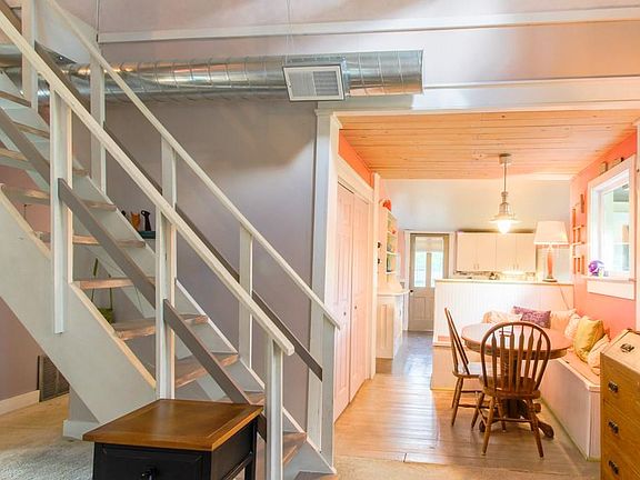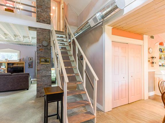 Artsy loft style home with the charm of the past for the lifestyle of today!!! The natural light and open spaces make this home a unique treasure! Open concept living spaces include vaulted ceilings in the bedrooms, entry way and kitchen. Fully applianced kitchen with built-in seating and shelving. Main floor mastersuite with bath and large closet. Open staircase to the two loft style bedrooms with a full bath. Conveniently located main floor laundry. Covered front porch and rear back deck for entertaining. Great flat backyard! Many updates including exterior of home painted 2019, new furnace & central air 2019, new vinyl windows 2017, kitchen updated 2014, master bath updated 2019.