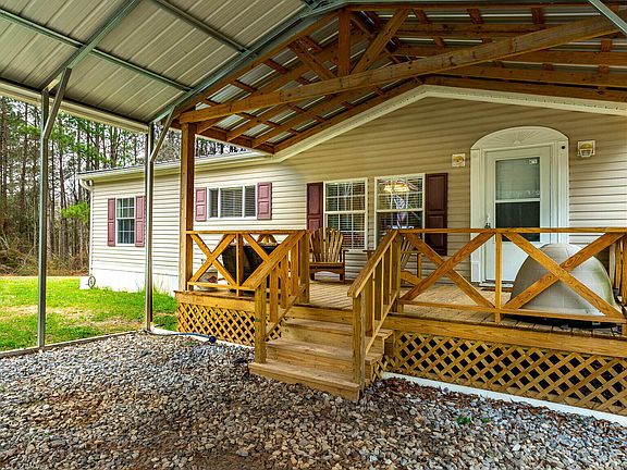 This 2007 3 bed 2 bath Springdale Manufactured home is 1,800 square feet and sits on 1 acre MOL. You'll love the covered front porch leading to the two car covered parking area. The back porch is also covered, and overlooks the spacious back yard which includes a storage shed. In 2022 the owner updated the home with new paint, carpeting, waterlines, septic system, heating/air, refrigerator and washer/dryer.