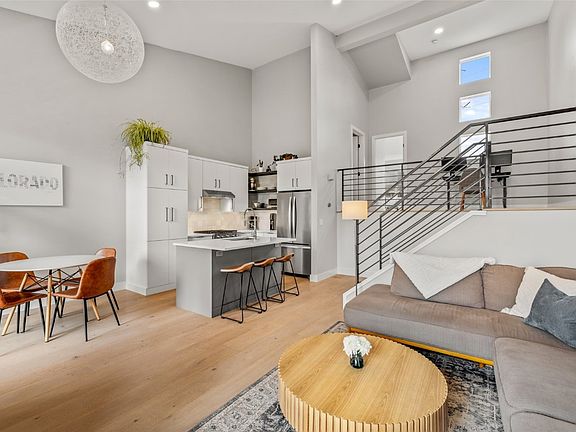 The upper level offers a versatile loft, perfect for an office, reading nook, or yoga space, and a bedroom suite filled with natural light, mountain views, and private bathroom. The private lower level primary suite offers a walk-in closet, ensuite bathroom (fully remodeled and brand new!), and patio access leading to a grassy lawn and courtyard.