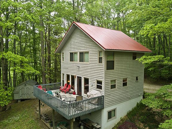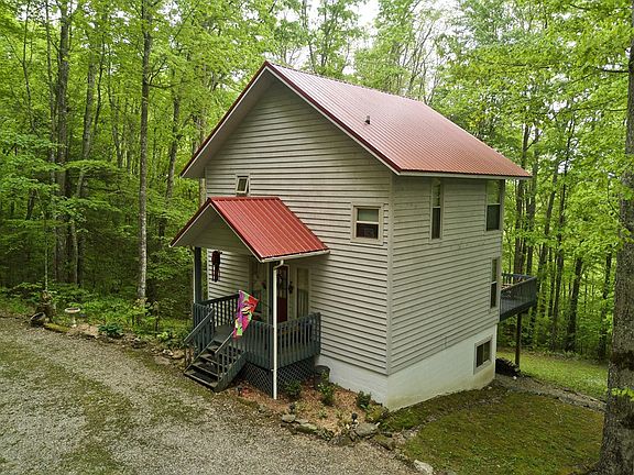 If you are looking for sweet serenity and privacy look no further. Small creek greets you as you drive to this private oasis. Extremely easy access to this beautiful home surrounded by lush green forest. Large deck overlooking the property and with what could be a phenomenal mountain view with some trees trimmed. Custom built home with large master suite and bathroom on upper level of home. Great room on main level with living room, dining room and kitchen and half bath. Lower levels has a recreation room and additional bedroom and bath. New metal roof. This is a good one and will not last long!! Call to schedule your appointment today!