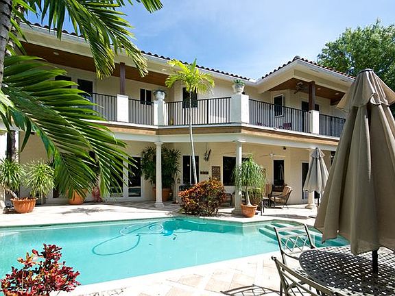Old Floresta EstateBoca Raton, Florida LocationPeriwinkle Street, Boca Raton, Florida. Renowned for its majestic charm, Old Floresta is a unique historic neighborhood established in the 1920s by celebrated architect Addison Mizner, who gave Boca Raton its signature Spanish Mediterranean style.Featuring many original residences and others of historical style, this sought-after enclave creates an Old Florida setting in the heart of Boca Raton, minutes from the landmark Boca Raton Resort, Mizner Park, and the beach. PropertyTimeless clean-lined Mediteranean-inspired design sets the tone for relaxed living in this beautiful estate custom built in 2003. Entered through an inviting courtyard with pecky cypress double doors, the residence features open-concept living areas connecting through south-facing window walls to a full-length loggia by the saltwater pool and separate canopy-covered spa. Lush tropical foliage creates privacy for wonderful grand scale or intimate entertaining. ResidenceThis spacious and well-planned residence totals 5,293 square feet with five bedrooms, four and a-half baths, and three-bay garage. Special finishes include custom cherry cabinetry, marble counters, Saturnia marble floors on the main level, and Brazilian cherry floors upstairs. Leading to the poolside loggia, the open layout easily circulates from the living/family room with fireplace and media/display cabinetry into the dine-in gourmet kitchen and game room with built-in bar. There is also a formal dining area, across from the kitchens pass-through counter. The versatile custom-fitted library/bedroom has an en-suite bath that doubles as the cabana bath. Upstairs, the large private master suite opens to a balcony overlooking the pool and garden.Along with two walk-in closets, the luxurious marble master bathroom features a jetted tub, glassed shower, and separate water closet. Three more bedrooms with two bathrooms all open to balconies.