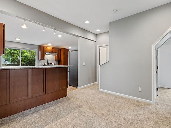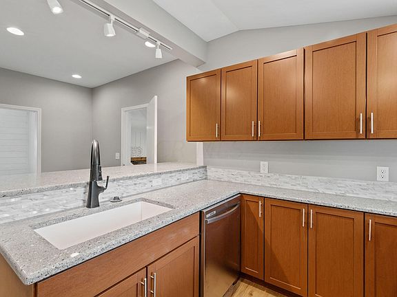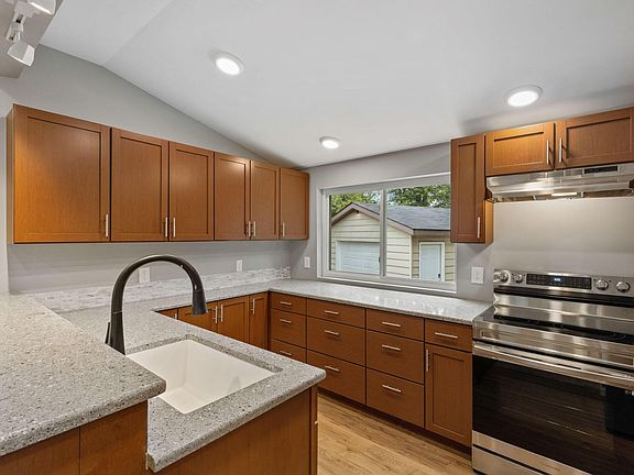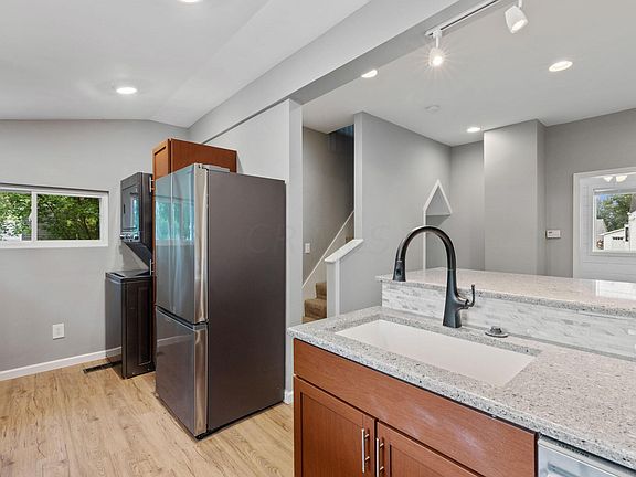 This adorable home has the charm of its era with all the upgrades you will love. Brand new kitchen is loaded with cabinets, stainless appliances, new lighting, and breakfast bar. Large window overlooks fenced backyard. Sparkling new bathroom has large storage closet and modern finishes. Rec room has brick fireplace and hearth. Private bathroom entrance for owner suite. New flooring and fresh paint everywhere. Sit out on the covered front porch. Concrete patio. Short stroll to community park. Super easy access to I-70 and route 310. Lots of storage in detached garage. Washer/dryer included. Hot water heater 3 years old. Furnace 5 years old. A/C compressor replaced 2020. A/C cleaned and serviced. Drain line to street has been cleaned. Home to be sold ''as-is''.