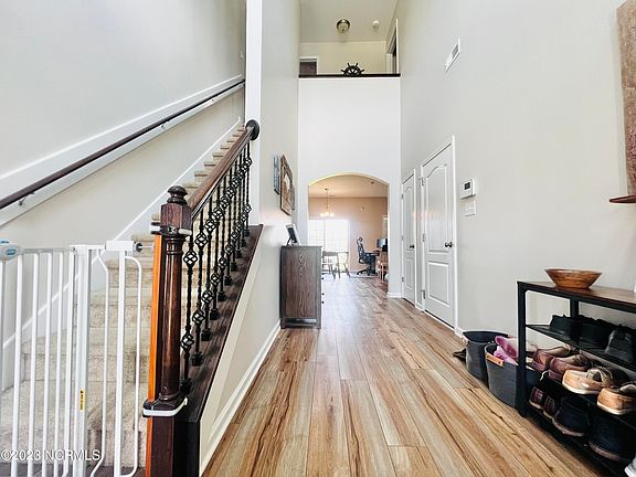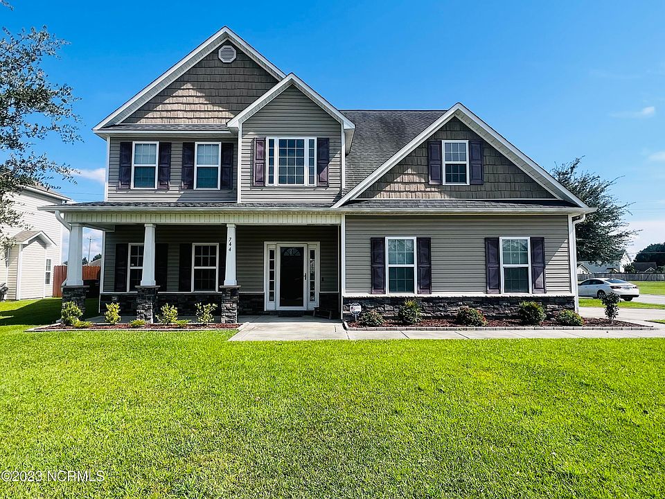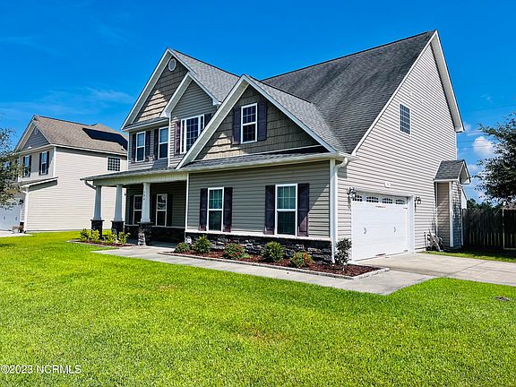 Welcome to Carolina Plantations, one of Jacksonville's most sought after subdivisions. This beautiful 4 Bedroom 2.5 Bathroom is located on a corner lot with a side entry garage. The cared for landscaping, stone accents and covered front porch adds to the stunning curb appeal. You will enter and notice the grand two story foyer. To the left there is a flex room with coffered ceilings, chair railings and an updated light fixture. The main level flooring has been updated earlier this year. The kitchen has stainless steal appliances and lovely dark cabinetry which allows for plenty of storage. Also downstairs is a half bath, garage access, pantry and laundry room. Upstairs you will find the owner's suite with its own bathroom, three additional bedrooms, and another full bath.