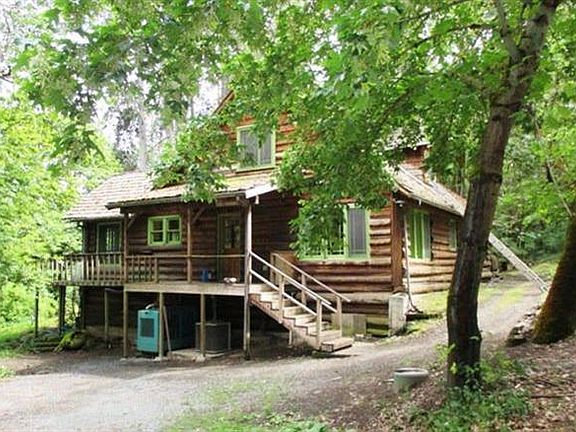 Log cabin in the woods.on 45 acres to be precise. Built in 1929, this 1974 sq./ft. three bedroom/two bath log home with wood interiors downstairs is warm and inviting. Remodeled in 1982, there are tile counters and plenty of wood cabinets in the open kitchen. Upstairs is a dry-walled and carpeted family room, complete with window seat. Expansive deck on the front of the house is in need of repair, and there's some work to do but priced to entice! Up the hill is a shed and a 36x40 pole barn with pens. Beautiful rolling grounds surround the home as well as a fenced pasture, and then the land rises more steeply up and over the mountain. Older well report on file indicates 100+- GPM. BLM on three sides of the back of the property . So many possibilities await you here. Check it out!
