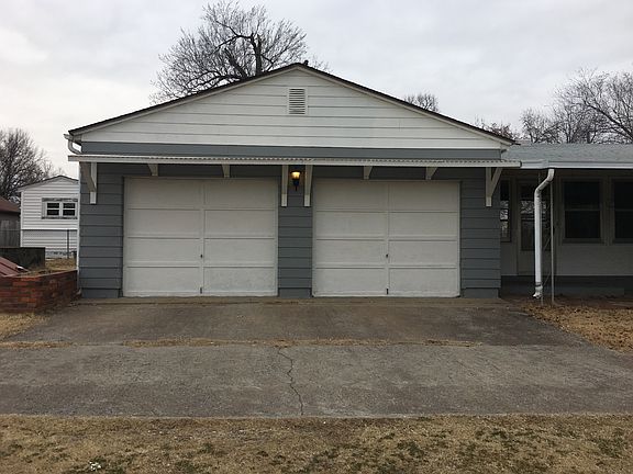 Don't miss out on this gorgeous updated charmer! Beautiful original hardwoods and a unique knotty pine accent wall welcome you inside. Spacious living room is perfect for entertaining! Updated, stylish kitchen boasts new flooring. Dining room has built-in hutch for storage and exposed brick wall. Delightful enclosed porch is perfect for relaxation! Large corner lot with mature trees and unique brick designs, close to shopping and schools! Built-in storm shelter in backyard. Don't wait to see this stunning city gem!