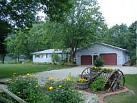 FLAT RIVER FRONTAGE ~ This beautiful home sits on nearly 10 acres with a pond, 60 x 120 horse barn with an indoor riding arena, box stalls, tack & grain room and fenced pastures. Also features a smaller barn in one of the front pastures. Attached 2 stall garage and 1 additional garage w/run in kennel. Private setting w/paved road. Sit on your back deck over looking 700+ft of Flat River frontage and wildlife. The home itself boasts of a spacious 3168 sqft of living with 5 bedrooms, 2 full and 2 half baths. A private master suite with one of 3 fireplaces, has its own private bath with a whirlpool tub and a large walk-in closet. Cozy up around the fieldstone fireplace in the great room. There's a lot of room in the kitchen (appliances remaining) and a center island for the quick meals and counter space for meal preparation. A main floor laundry also has a full bath, the washer and dryer here will stay. Two additional bedrooms are on the main level as is a half bath. The walkout level could be used as another full living area for the extended stay visitors with its family room/rec room and another fireplace and the full kitchenette (refrigerator, gas range, and dishwasher will stay). Two more bedrooms down here as well as another laundry area with its own washer and dryer. All of this is just north of Turk Lake and just minutes N. of Greenville.