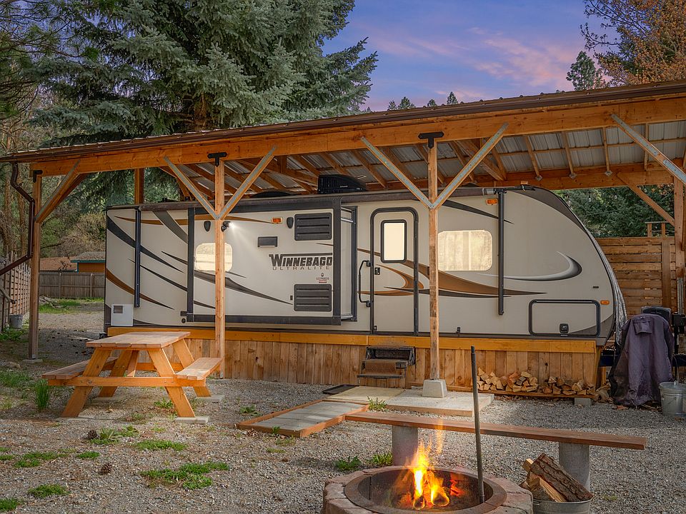 Monthly RV Rental! Fully Furnished at private property close to the river. Relax in the wood-burning sauna with some essential oils, cook dinner around the fire, walk to the river, or play on the zipline! This RV is perfect for month-to-month rental or up to 6 months at a time!