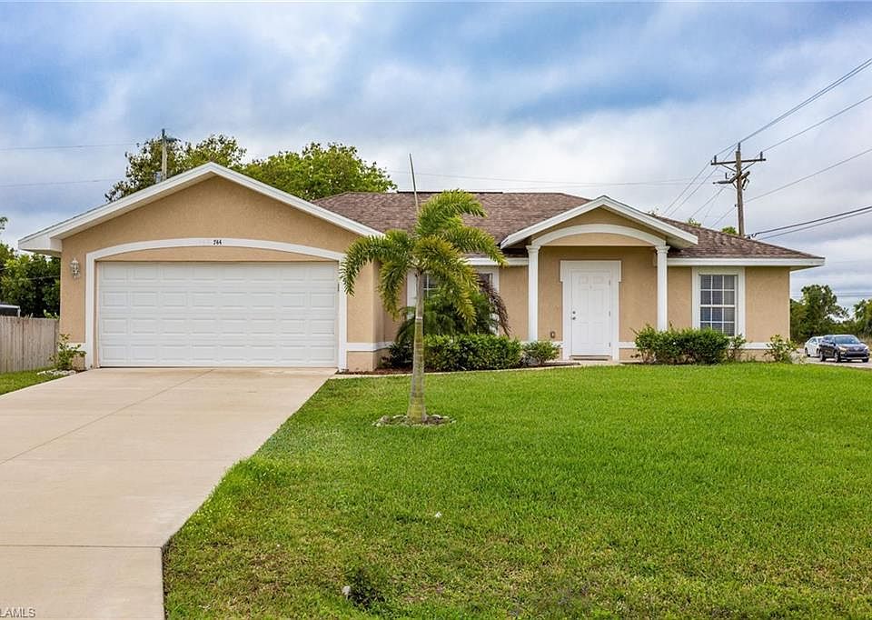 Experience this light, bright and airy 3 bed 2 bath home in a great area of Cape Coral. City water and sewer are in - no costly future utility expansion assessments to worry about here. Fully upgraded, enter your great room with 100% porcelain tile on the diagonal throughout the home. Great room leads to gorgeous kitchen with wood cabinets, stainless steel double kitchen sink, newer stainless appliances, dovetail soft close drawers and granite counters. Master bedroom has a large walk-in closet, master bath is fully upgraded with granite counters, walk-in shower and accented tile and mirror. Slider to the large epoxy finished lanai is double-paned and insulated. Great location for all Pine Island Corridor restaurants and shops. Call today for your personal tour.. All Measurements details and description provided by owner.