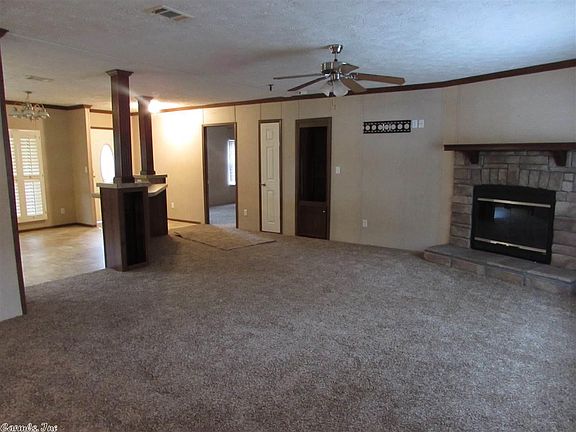High quality double wide mobile home on permanent foundation situation on 1.50 acres. Large spacious kitchen featuring cherry cabinetry with new cookstove, microwave, dishwasher and refrigerator. Kitchen opens up to oversized den with fireplace. Split bedroom plan, Master offers double sink vanity and whirlpool tub. Large utility room with sink. Great value and quality for the price. Register with listing agent.