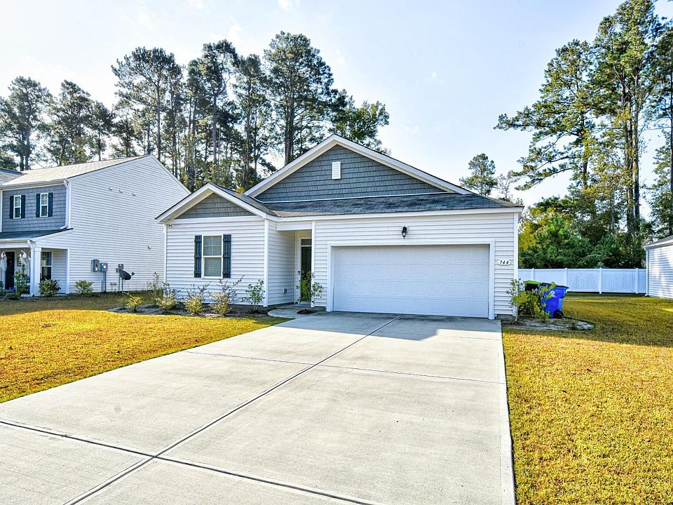 Welcome home to this like-new 3 bedroom, 2 bathroom home in the highly sought after community, Harmony at St. James (in the St. James school district!) This home features a spacious open floor plan of the main living areas with LVP flooring throughout! The kitchen is equipped with all stainless steel appliances, granite countertops, a work island with a breakfast bar, and a pantry for extra storage. Each bedroom offers plenty of closet space and easy access to a bathroom, while the master also offers a ceiling fan, large walk in closet, and private master bath with double sink vanities. Enjoy afternoons relaxing on your covered back patio, or socializing with friendly neighbors in the community. Harmony is perfectly situated close to schools and grocery, and near all of the Grand Strand's finest dining, shopping, golf, and entertainment attractions. You won't want to miss this. Schedule your showing today!