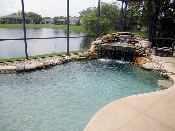 NEW ROOF ORDERED. Gorgeous move in ready lakefront pool home with 3 bedrooms, plus additional flex room or office, open floor plan, formal living, dining, breakfast bar with barstools and nook overlooking pool and lake. Large owner's suite with his/hers closets, double pedestal sinks, large custom walk- in shower, quartz countertops in both kitchen and guest bathroom.