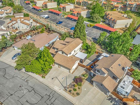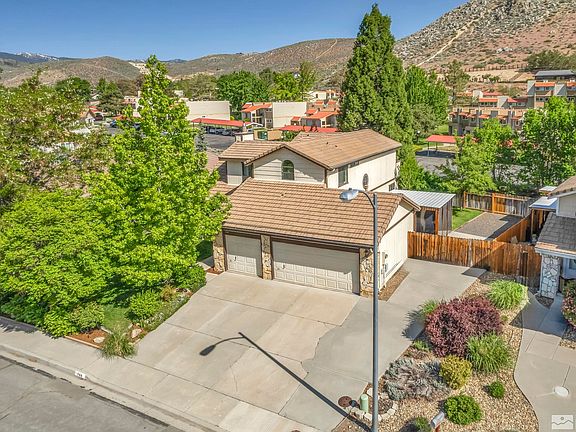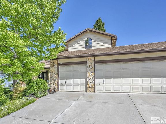 Hard to find 4 bedroom 3 full bath with RV parking is move-in ready. Spacious with high vaulted ceilings, this home is great for entertaining. Hardwood floors, ceramic tile and upgraded newer carpet throughout. Remodeled kitchen has custom granite slab countertops in addition to alder wood cabinets with easy slide out cabinets and drawers. Extra large breakfast bar with chairs. The large master bedroom has a balcony surrounded by trees and mountain views, perfect for night sky watching., The downstairs bedroom could be used as an office. Pellet stove insert in the living room has remote control thermostat. Includes all appliances and washer/dryer. The extra large three-car garage is fully finished and insulated. RV parking in the back and has room for your extra toys. Fully landscaped with automatic sprinklers and drip system with large mature trees in the front and the back to provide shade and privacy. This home has it all. The home is centrally located close to hospital, medical centers and shopping. 17 minutes to Reno and 30 minutes to Lake Tahoe. It is a must see, call today for an appointment.