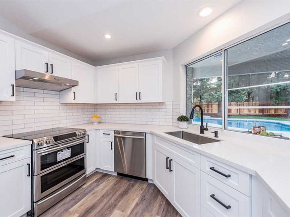 Beautiful and fully renovated home centrally located in award-winning CUSD, minutes from dining, shopping & walking trails. Upon arrival, notice the fresh landscape & appeal of the home w/ mature trees, new fencing, paint & stone work. Enter the home & enjoy the luxury plank flooring, high ceilings, & large windows featured throughout the home. The living room is finished w/ brand new french doors & an upgraded stone fireplace. The kitchen showcases quartz countertops, Samsung stainless steel appliances including a double oven range & built-in microwave drawer, & an informal dining area off the kitchen. Each bathroom has been renovated w/ new vanities, tub, spa shower panel, and more. Outside, you will find a true oasis whether you are enjoying the covered patio w/ new stone detail, the spacious lawn, sparkling pebble tec pool w/ rock waterfall, custom rock natural gas fire pit, or the pondless wet or dry creek for trickling water. Contact our team today for your private showing!