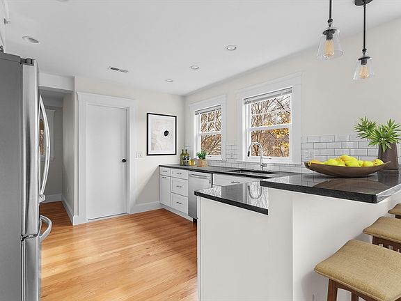 - Features: Closet/Cabinets - Custom Built, Flooring - Hardwood, Countertops - Stone/Granite/Solid, Exterior Access, Recessed Lighting, Remodeled, Stainless Steel Appliances, Peninsula, Lighting - Pendant