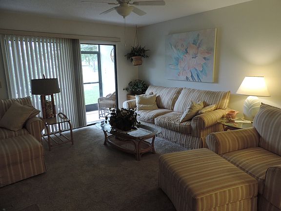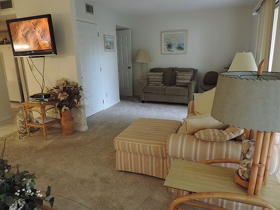 Exceptional two bedroom plus den on first floor with pond view. Condo has morning sun exposure. Its a corner unit. Condo is furnished. Screened-in lanai has laundry area with washer and dryer. Newly remodeled kitchen, and bathrooms. All new carpets in LR/Den and bedrooms and 6 panel doors installed in remodel. New lights and ceiling fans were installed. Entire condo was also recently repainted. Association has pools, tennis courts, golf course, exercise room, library and clubhouse. Shopping, restaurants, beach, and biking path nearby.