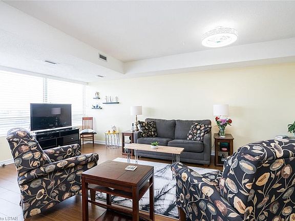 Spacious 1200 sq ft 3 bedroom, 2 bath end unit condo in desirable Westmount subdivision... welcome to the Forest City. Large open living and dining room, huge windows, easy care floors, master bedroom with walk in closet and 3 pce ensuite, plus in suite washer and dryer. Updates include: forced air gas furnace and central air 2018, dishwasher, washer, dryer, fridge, stove 2017, kitchen refresh with updated cupboards, granite counter and island, walk in closet with California closet system and main bath tub surround. In unit control gas heat and central air, covered assigned parking and secured entry. Pet free building. Well maintained building boasting beautiful party room with kitchen area, rooftop and outdoor terrace with BBQ area, whirlpool, exercise center, sauna and library. Just move in and enjoy!
