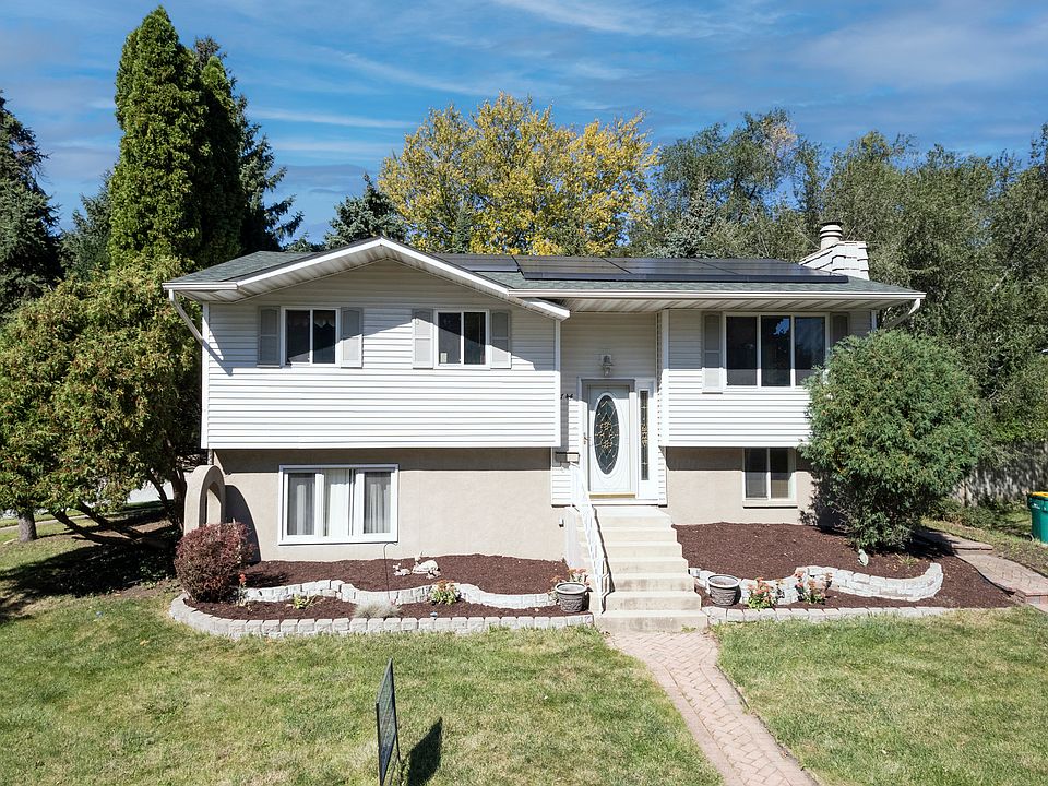 This bright 4-bedroom, 2-bath raised ranch features an open layout with a vaulted ceiling and skylights. The eat-in kitchen's 3-foot bay window adds charm, and the living room's engineered wood floors create a warm ambiance. The main floor has three bedrooms with ceiling fans, while the lower level includes a large family room with a wood-burning fireplace, a master bedroom, full bath, laundry room, and an extra room for storage or a walk-in closet. Updates: Roof (3 yrs) Solar panels (1 yr) A/C (6 yrs) Hot water heater (2 mos) High-efficiency furnace (16 yrs) Appliances less than (6 mos), Bathrooms, Kitchen, 2 bedrooms, Walk in closet and Laundry room are freshly professionally painted to look fantastic. Outside, enjoy a landscaped corner lot with an 18x20 deck, and detached 2 1/2-car garage. Nestled on a quiet dead-end street with views of O'Hara Woods Nature Preserve, perfect for nature walks. Within walking distance Parks, Park District events, the Recreation Department, Toyota Pavilion, and the Village Hall . Close to Stores, Expressways, and Restaurants. Sold As-Is. Pictures of freshly painted spaces will be downloaded the latest Saturday morning.