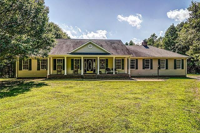 ADORABLE RANCH HOME TUCKED AWAY ON 15+ ACRES! Long Private Driveway leads to this One Level Living Home w/Full Brick Front Porch! Spacious Foyer leading to Kitchen featuring Hardwood Floors, Island, Eat-In Area & Pantry. Open Concept Family Room includes Arched Entry, Corner Gas FP/Mantle, Vaulted Ceiling & French Doors. Additional Spacious Den offers Flex Space w/FP/Mantle, Tray Ceiling, Recessed Lighting, 2 Light/Fans, French Doors. Master Bedroom offers great Natural Light, Tray Ceiling, Walk-In Closet, Carpet & Ensuite Bath w/Dual Vanity, WI Shower, Jetted Tub & Recessed Lighting. Additional Bedrooms have Light/Fans, Sizable Closets & Carpet. Updated Lighting Throughout. Enjoy the SERENE PRIVATE SURROUNDINGS from the Deck & Patio overlooking the Huge Backyard with Part Fenced Area for Pets/Kids. Attached 1 Car Garage AND 2 Car Detached Garage plus Additional Detached Sheds & Carport provides Tons of Extra Storage Space - Every Man's Dream! Great Location Conveniently located between Richmond & Williamsburg!