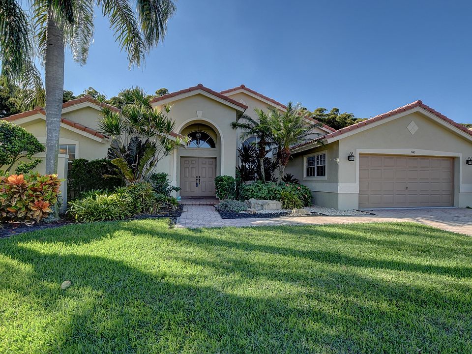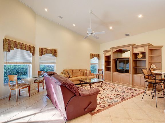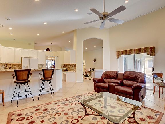 Highly desired Large Eaton model is being sold FURNISHED. This home boasts an open floor plan & is located in the beautiful Lakeridge Falls. Home offers an en-suite with bathroom in the second bedroom, great for mother-daughter & offers lots of bells & whistles including gourmet Kitchen Upgraded granite countertops, a full backsplash & granite breakfast bar which opens to an expansive family room. Home offers a beautiful entertainment center, newer A/C system 2015, a grand double door entry plus a covered, tiled & screened outdoor patio with private garden views. Home equipped with neutral tile on diagonal in main living areas, fans, fixtures & window treatments through out. This home is move in ready!