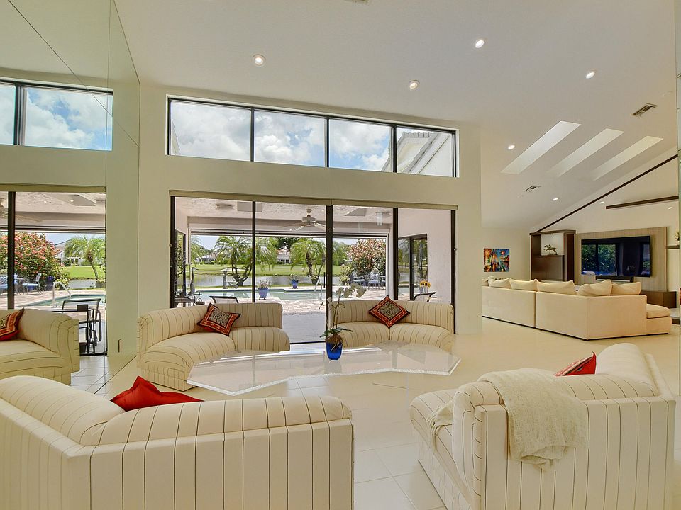 Absolutely stunning views overlooking the lake and Par 3 14th hole on Dye IV.Huge pool and patio area. Beautifully maintained home featuring a new roof, whole house generator, full hurricane protection, phantom screened patio. Also features a golf cart storage area, an air conditioned garage. Interior of home is updated. NO STEPS. All bedrooms in main home are en-suite. New cabana bath and bonus room attached but no access to main house. Totally private street at end on subdivision features privacy and boasts a beautiful view even from the front of home. A very rare and special opportunity to own a spectacular property in Boca West!