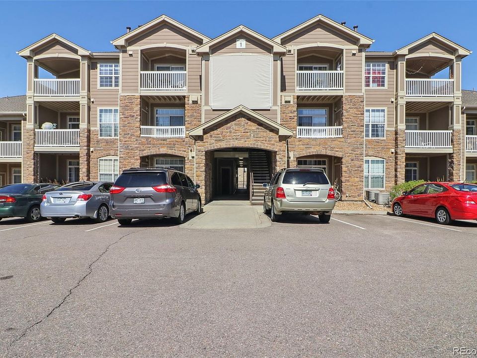 Third floor condo with great view of mountains and green space. Spacious master bathroom with huge walk-in closet and master bathroom! Private balconies off both master bedroom and living room. Comes with rare detached 1 car garage plus all amenities like pool, hot tub, clubhouse, and fitness center which all make this a great place to live! Neutral colors with updated kitchen and baths.Great location, close to DTC, I-25, E470, Centennial Airport and Parker.