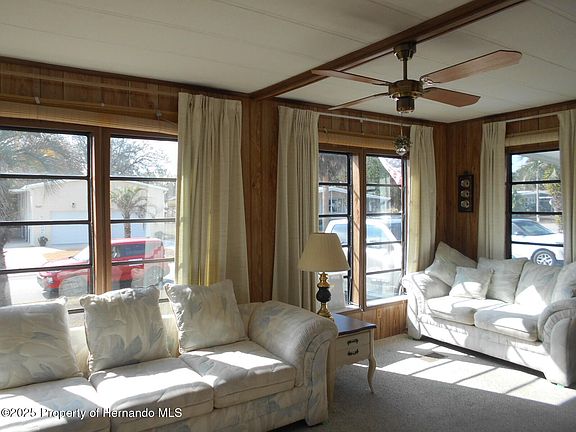 Welcome home friends! This 2 bedroom 2 bathroom fully furnished home is located on a quiet street. Has a year round Florida room. Glass windows, Laminated floor through out. Light and bright. A/C 2011, Metal roof over. A hop skip and a jump to the front gate. This is a beauty. You wont want to miss so come on down and enjoy the sun in a 55+ community where you own your own land!