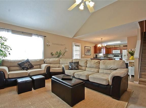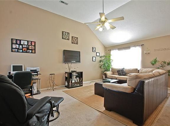 Open floor plan with vaulted ceiling in large Living Room that flows nicely into Dining area and into Kitchen, glass tile backsplash, nice blinds throughout, big fenced back yard with separate fenced area for the doggies and even an insulated dog house! (Uploaded Saturday)