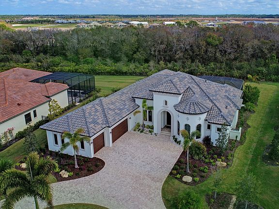 This brand new construction home is equipped with the highest luxury upgrades. A double door entry with glass paned windows emits natural light into the living room, complete with 12-foot ceilings, a gas fireplace, hardwood and tile flooring throughout, chandeliers and recessed lighting. The kitchen offers an oversized island, quartz counters, under cabinet lighting, wine fridge, stainless steel appliances, gas range and built in shelving. The master ensuite offers a dual vanity, walk-in closets, marble flooring, mirror backlighting, soaking tub, coffered ceilings, walk-out access to the pool and views of the preserve. The heated saltwater pool and spa overlook the firepit, cabana with an outdoor kitchen and the nature preserve, ensuring permanent privacy. The home is pre-wired for smart home capabilities.