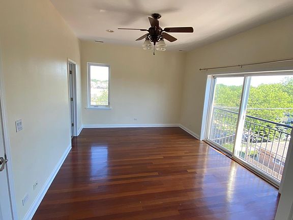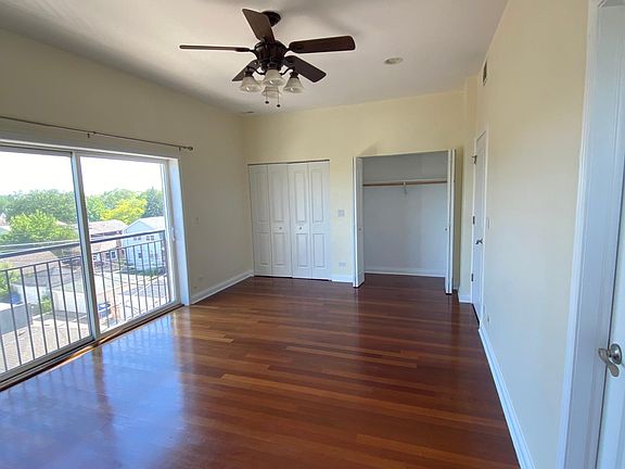 Beautiful 1500 SF, 3 bed 2 bath unit on the 4th floor (top) with a great view. Elevator inside building. Walking distance to award winning schools, parks, shopping malls, various stores, restaurants, and bus transportation. Tons of natural lighting, big bedrooms with an abundance of closet space, hardwood floors throughout, kitchen island with appliances, in unit washer/dryer. Designated parking spot in the rear of building. Pets allowed, wheelchair accessible. Move in ready! Welcome home. Owner pays for water. Renter is responsible for electricity and gas. Pets are allowed and a parking space is included.