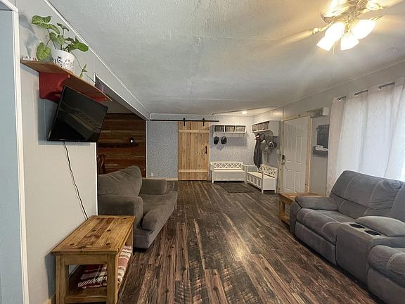 In-town convenience with a country feel! This property spans over ¾ acre on two legal parcels, featuring a fenced backyard for privacy and 30+ mature fruit trees—apple, cherry, pear, plum, apricot, walnut—plus grapes and raspberries. At nearly 3,000 sq ft, the home offers generous living space. The 400sqft kitchen boasts a soaring conical ceiling, food prep. island/bar, lots of cabinets, & granite tile counters. The main floor includes 3 bedrooms, including an octagon-shaped primary w/massive windows & a 14-ft ceiling. Upstairs is a charming bedroom w/skylights & an ensuite bath. The walkout basement adds a bedroom, living area, workspace, and 9x26 storage/utility room. Detached 20x30 shop/garage. Multiple updates throughout the home. Bonners Ferry living at its best - come see it today!