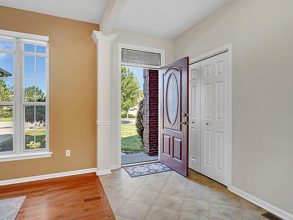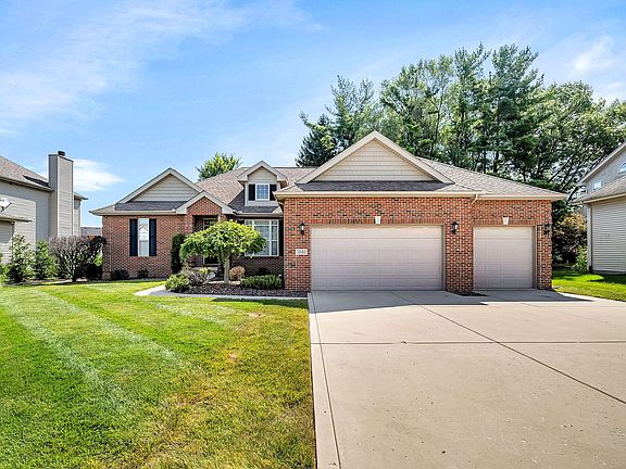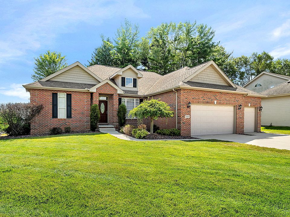 In high desire Camden Woods, this 3 Bedroom, 2 Full & 2 Half Bath brick & vinyl ranch home, with 3 car garage, offers spacious rooms, neutral decor and an open, flowing floor plan. Generous front yard and covered entry welcome you into the ceramic defined Foyer and adjacent formal Dining Room with elegant columns. High ceilings add drama & space. Rich hardwood floors, installed in 2019, blanket the main living areas.The Formal Living Room is enhanced by its brick gas fireplace and vaulted ceilings. Your Kitchen features 12x12 tile flooring, granite countertops, upgraded stainless steel appliances (which stay with the home), and a casual dining area. Patio doors from the kitchen lead out to a deck and then down to a large brick patio within the fenced backyard. Whether entertaining or simply relaxing at the end of the day, you'll appreciate views of a serene wooded area behind you.The Primary Suite, situated on one side of the home, boasts hardwood floors and a spacious Ensuite Bath with stand alone shower, garden tub, dual sink/vanity areas plus a generous walk-in closet. On the opposite side of the home, you'll find two Guest Bedrooms (one with a walk-in closet) and a Full Bath. The main level also reveals a Powder Room & Laundry Room.The full Basement is partially finished, featuring a well defined Family room, wrapped pillars & wood laminate flooring highlighted by recessed lighting. There is also a half Bath plus large unfinished area perfect for storage or potential additional living space.A fantastic bonus feature is the whole house generator giving you peace of mind during summer & winter storms! With its neutral palette & spacious floorplan, this is a charming home you'll love making your own!