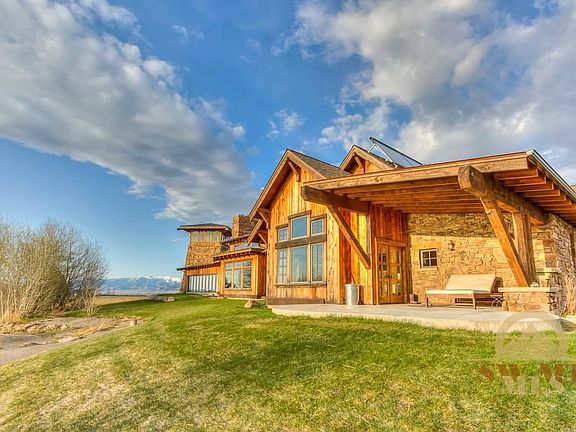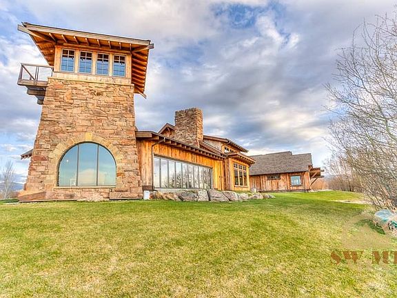 This amazing custom home leaves no detail overlooked. From the two story fireplace in the great room, to the crow's nest with spectacular 360 degree views, this home is the quintessential Montana retreat. The generous master bedroom is on the main floor, and features a spacious shower with separate over flow tub. The theater screening room with attached bar area is perfect for entertaining, in addition the porch features an outdoor fireplace and accordion doors opening to the pond.