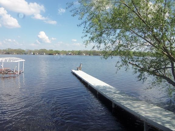 Make this your summer or year round home! This property has 90 degree views with this modular home- it is the perfect home for this lot. Numerous great features include: fenced yard, garage plus storage shed for your boat or camper or both. This home has a formal dining room, open concept, fireplace, 3 bedrooms, lots of storage, central air, wrap around deck, open porch with great views, all appliances stay: stove, refrigerator, washer, dryer, microwave, and garbage disposal. Bath has a whirlpool tub and with a skylight. There are 3 skylights located in the kitchen and baths. This property also includes a dock, lift and even a boat. Call Pat or Mark to see how spacious this home is. PRICE LOWERED BELOW ASSESSED VALUE. Price reduced!!!!!!!!!