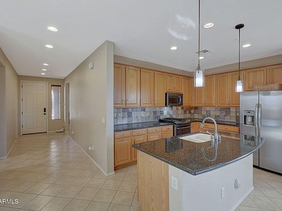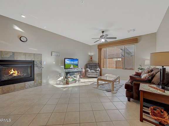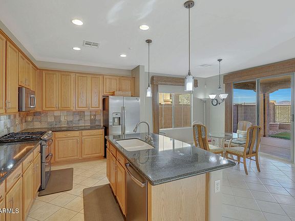 Situated in the scenic, gated community of Sonoran Mountain Ranch, this home is a beautifully maintained 3-bedroom, 2-bath. The sought-after split master floor plan offers an effortless flow, highlighted by a cozy fireplace ideal for both relaxing and entertaining. The kitchen is a chef's delight, featuring recent upgrades and stainless steel appliances all complemented by breathtaking mountain views. The master suite boasts serene desert views, a spacious walk-in closet, and a spa-like bath with dual sinks and an upgraded tiled walk-in shower. Step outside to a fully landscaped backyard where stunning Sonoran Desert vistas await. Enjoy access to a beautiful community pool and spa.